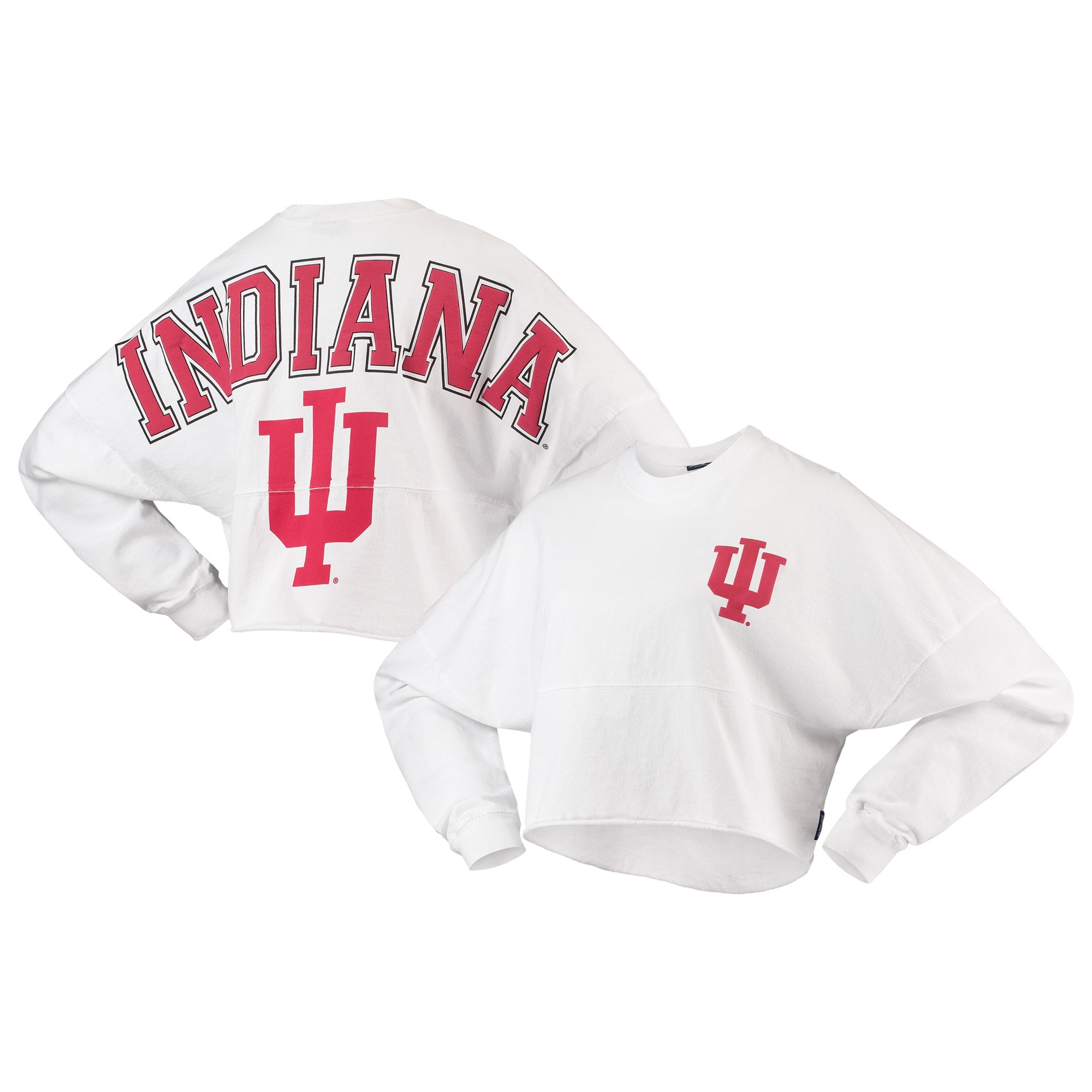 Women S White Indiana Hoosiers Raw Hem Cropped Spirit Jersey Long Sleeve T Shirt Walmart Com
